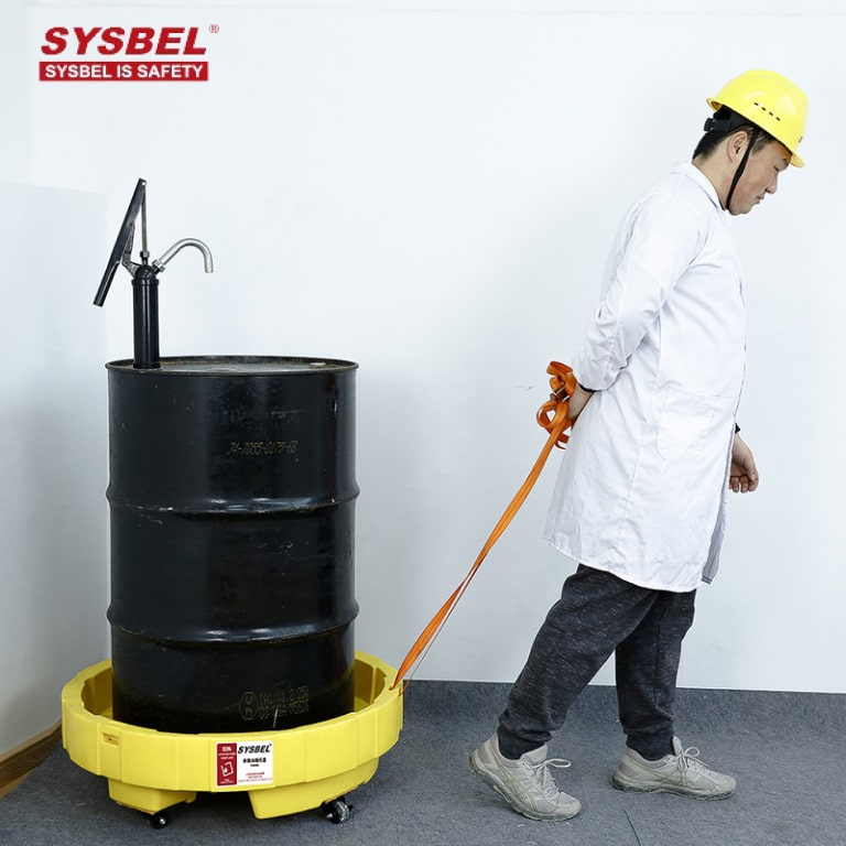 It is used to hold standard oil barrels, and operators can perform various operations, including extraction, filling, and sub-packaging. The tray has a leak function and the bottom can be operated with a forklift. Universal wheel installation holes are reserved at the bottom, which can be installed with universal wheels, which is convenient for use in various situations. Compatible with various containers such as Sysble emergency barrels.